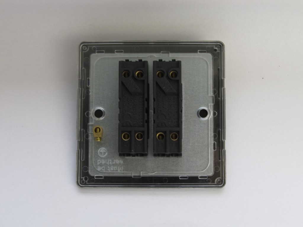 Kolébkový vypínač ROCKER - 2-modulový křížový (č.7) 10A 1-pólový BEZŠROUBKOVÉ - prémiová černá / chromové kolébky