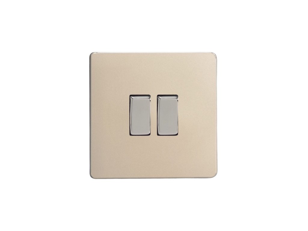 Kolébkový vypínač ROCKER - 2-modulový křížový (č.7) 10A 1-pólový BEZŠROUBKOVÉ - satén / chromové kolébky