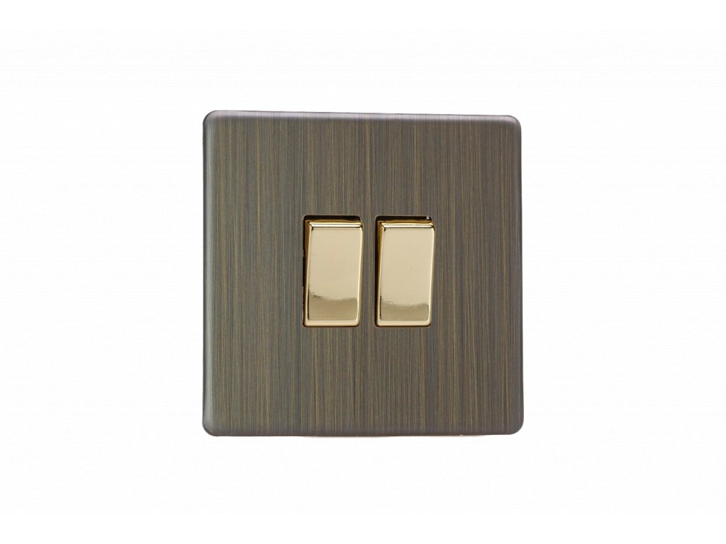 Kolébkový vypínaè ROCKER - 2-modulový køíový (è.7) 10A 1-pólový BEZROUBKOVÉ - staroitná mosaz / mosaz