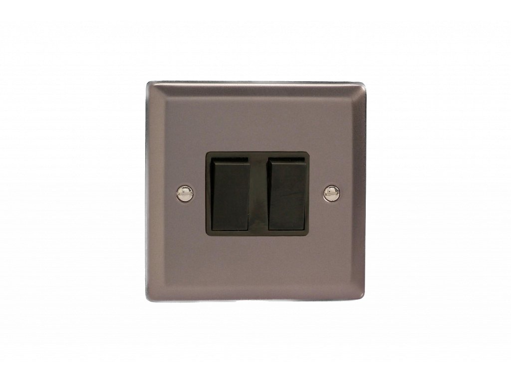 Kolébkový vypínač ROCKER - 2-modulový křížový (č.7) 10A 1-pólový KLASICKÉ - cínová / černé kolébky