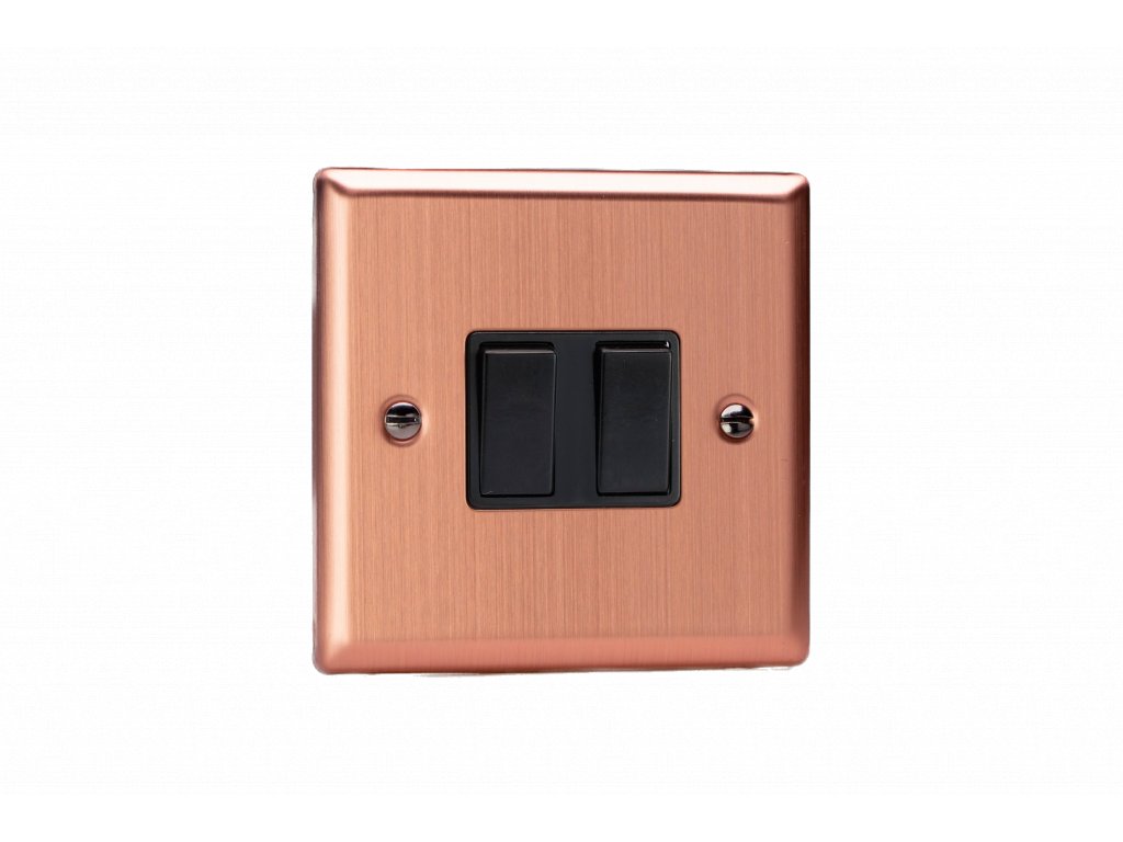 Kolébkový vypínač ROCKER - 2-modulový křížový (č.7) 10A 1-pólový KLASICKÉ - kartáčovaná měď / černé kolébky