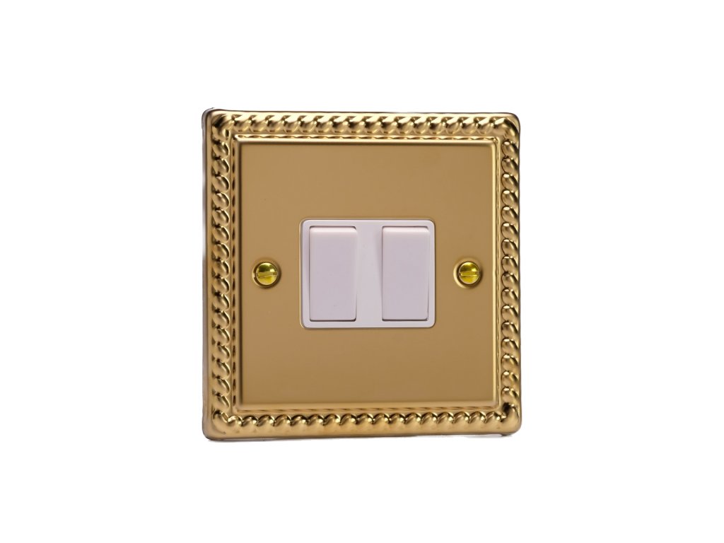 Kolébkový vypínaè ROCKER - 2-modulový køíový (è.7) 10A 1-pólový KLASICKÉ - letìná mosaz / bílé kolébky