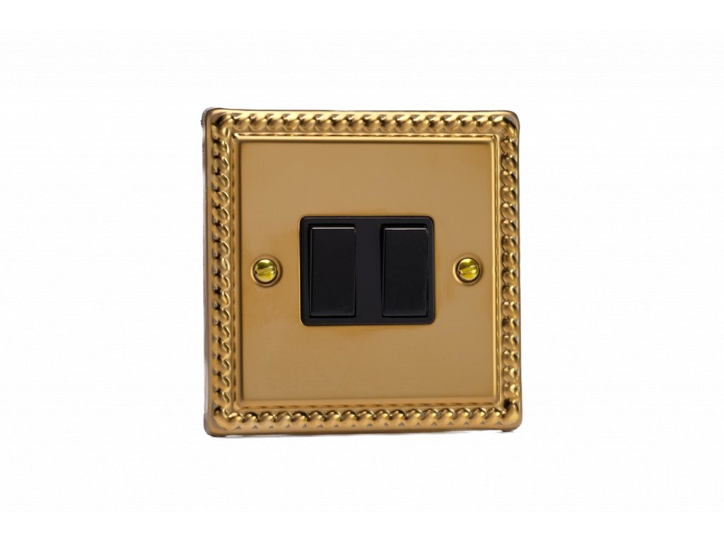 Kolébkový vypínač ROCKER - 2-modulový křížový (č.7) 10A 1-pólový KLASICKÉ - leštěná mosaz / černé kolébky