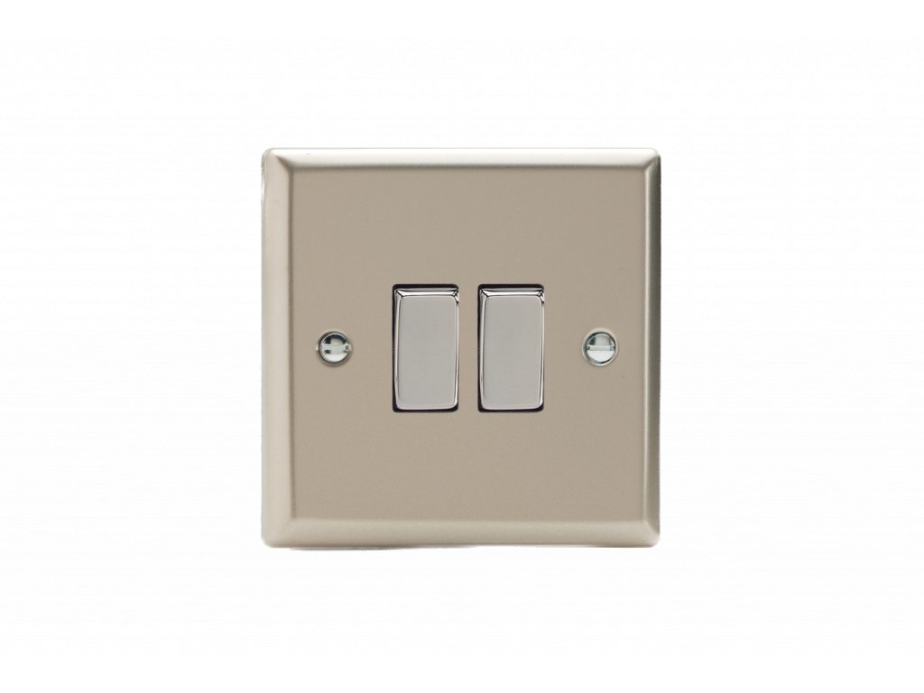 Kolébkový vypínač ROCKER - 2-modulový křížový (č.7) 10A 1-pólový KLASICKÉ - satén / chromové kolébky