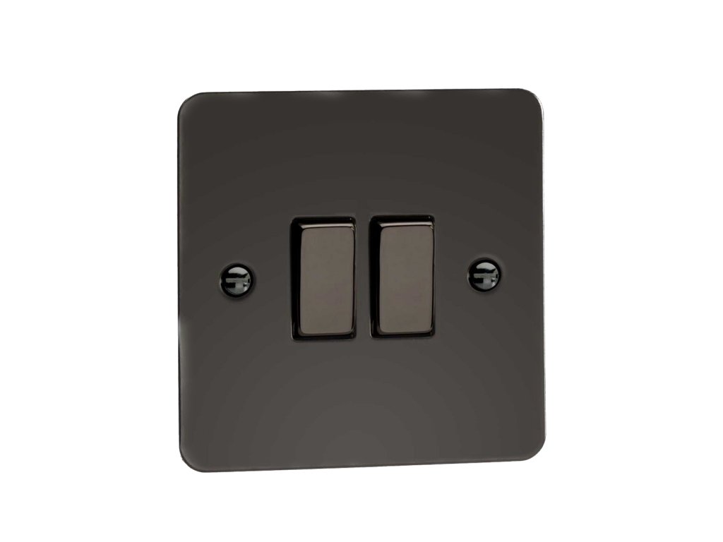 Kolébkový vypínač ROCKER - 2-modulový křížový (č.7) 10A 1-pólový ULTRAPLOCHÉ - černé (lesklé) iridium / černé (lesklé) iridium