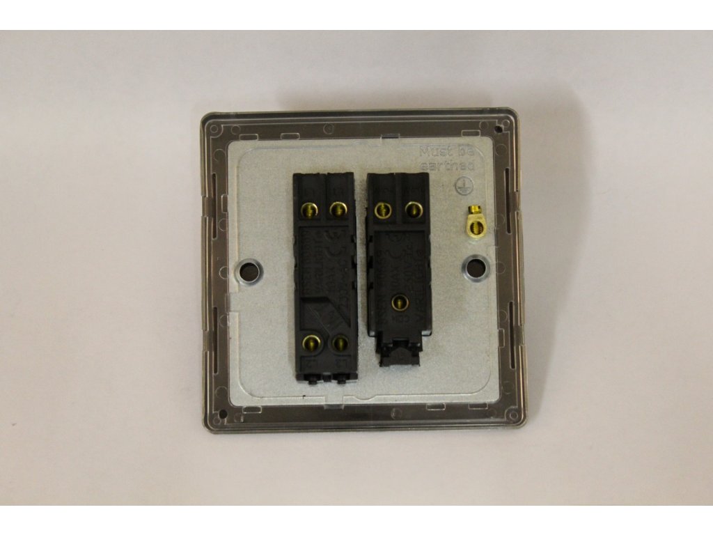 Kolébkový vypínač ROCKER - 2-modulový schodišťový (č.6); jednosměrný (č.1) 10A 1-pólový BEZŠROUBKOVÉ - kartáčovaná ocel / ocelové kolébky