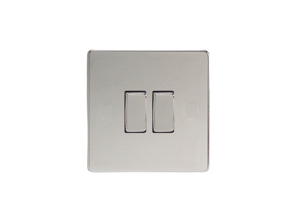 Kolébkový vypínač ROCKER - 2-modulový schodišťový (č.6); jednosměrný (č.1) 10A 1-pólový BEZŠROUBKOVÉ - leštěný chrom / chromové kolébky