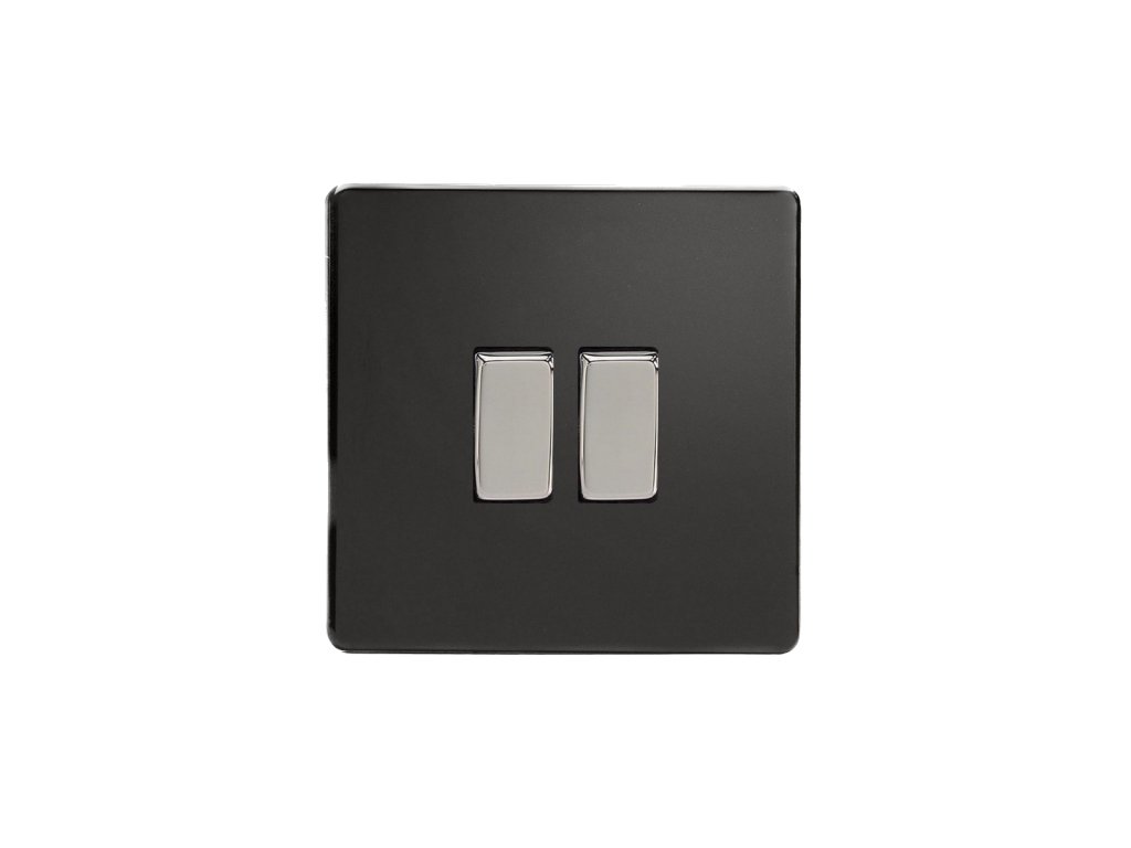 Kolébkový vypínač ROCKER - 2-modulový schodišťový (č.6); jednosměrný (č.1) 10A 1-pólový BEZŠROUBKOVÉ - prémiová černá / chromové kolébky