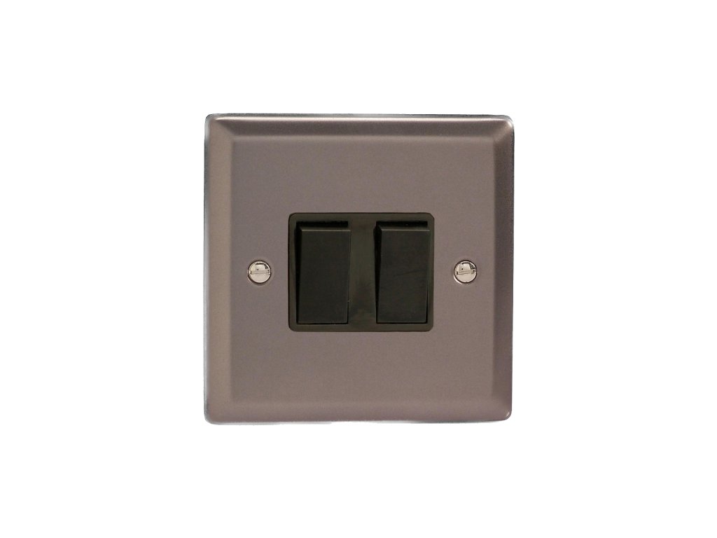 Kolébkový vypínaè ROCKER - 2-modulový schodiový (è.6); jednosmìrný (è.1) 10A 1-pólový KLASICKÉ - cínová / èerné kolébky
