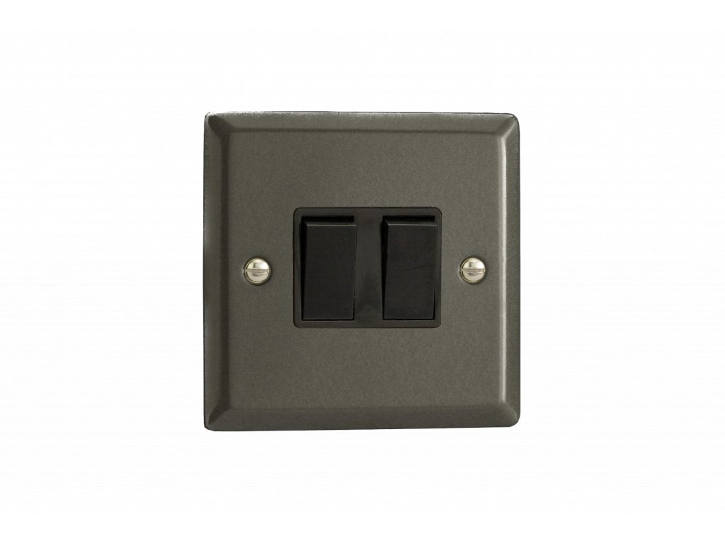 Kolébkový vypínač ROCKER - 2-modulový schodišťový (č.6); jednosměrný (č.1) 10A 1-pólový KLASICKÉ - grafit 21 / černé kolébky