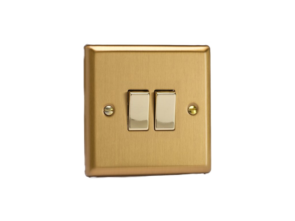 Kolébkový vypínač ROCKER - 2-modulový schodišťový (č.6); jednosměrný (č.1) 10A 1-pólový KLASICKÉ - kartáčovaná mosaz / mosazné kolébky
