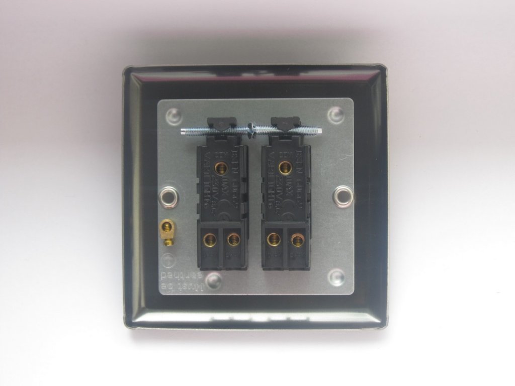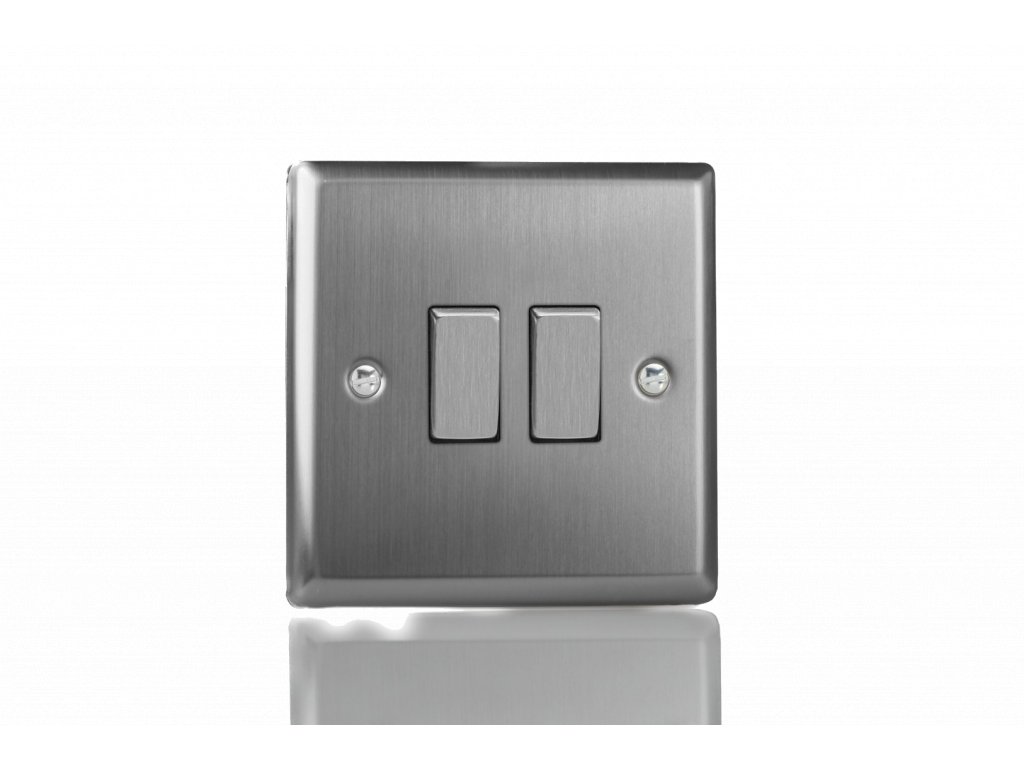 Kolébkový vypínač ROCKER - 2-modulový schodišťový (č.6); jednosměrný (č.1) 10A 1-pólový KLASICKÉ - kartáčovaná ocel / ocelové kolébky
