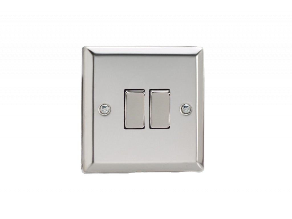 Kolébkový vypínač ROCKER - 2-modulový schodišťový (č.6); jednosměrný (č.1) 10A 1-pólový KLASICKÉ - leštěný chrom / chromové kolébky