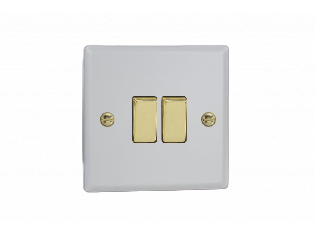 Kolébkový vypínaè ROCKER - 2-modulový schodiový (è.6); jednosmìrný (è.1) 10A 1-pólový KLASICKÉ - matnì bílá / letìná mosaz