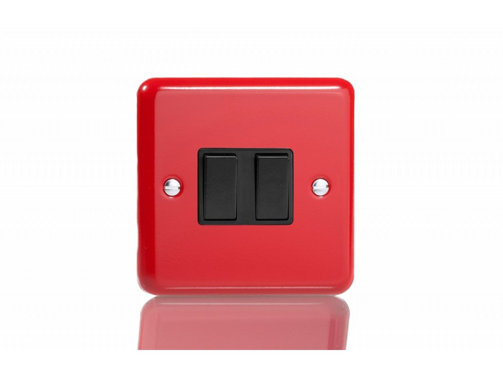 Kolébkový vypínač ROCKER - 2-modulový schodišťový (č.6); jednosměrný (č.1) 10A 1-pólový KLASICKÉ - poštovní červená / černé kolébky