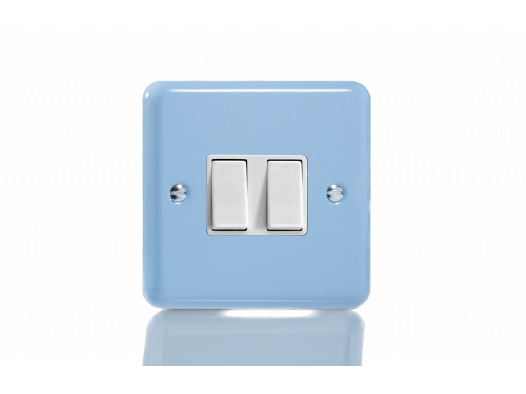 Kolébkový vypínač ROCKER - 2-modulový schodišťový (č.6); jednosměrný (č.1) 10A 1-pólový KLASICKÉ - skořápkově modrá / bílé kolébky