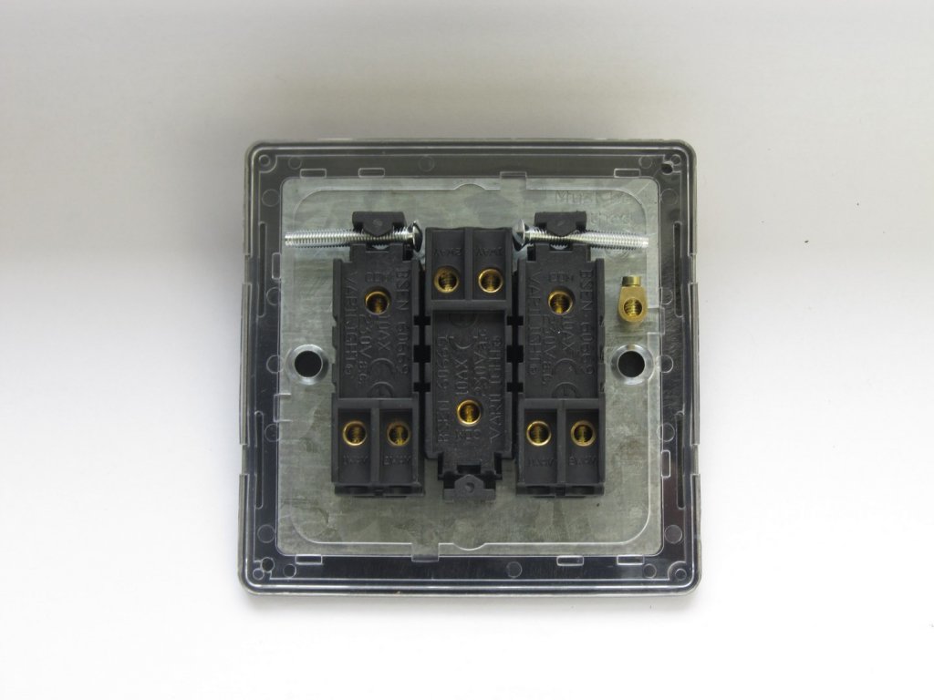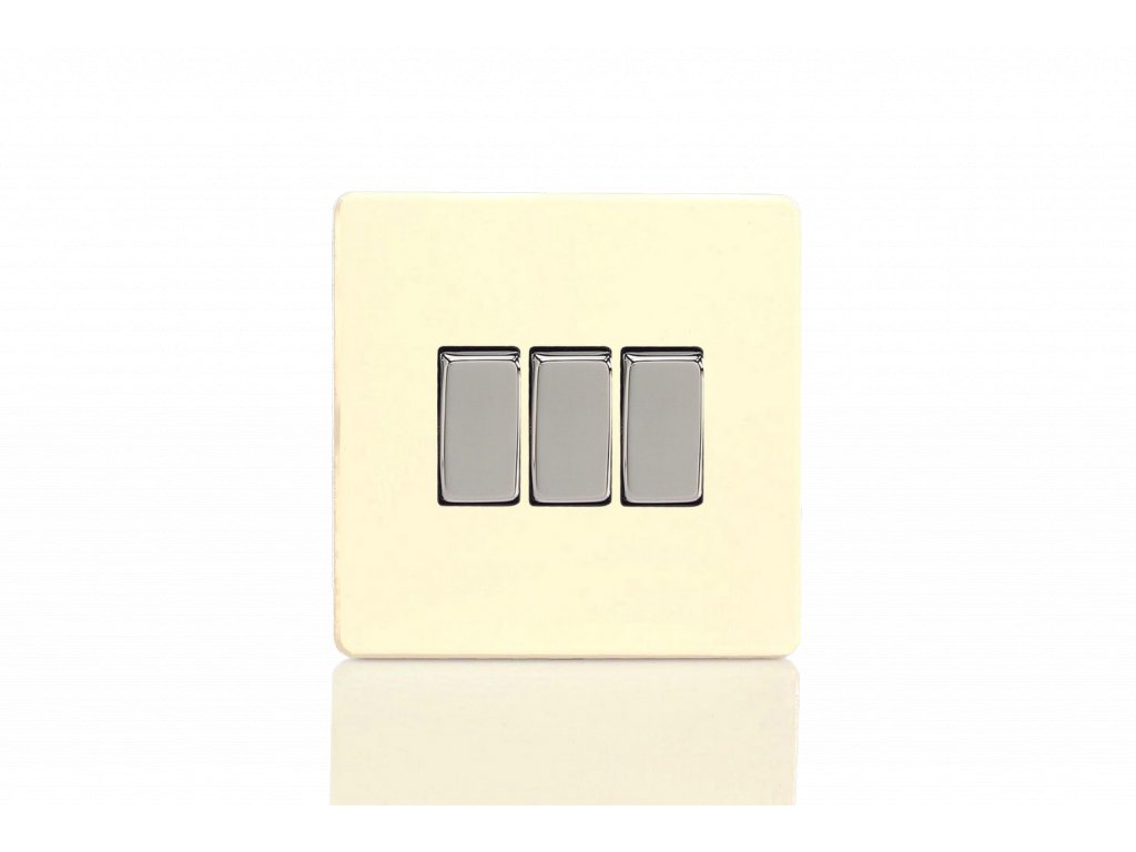 Kolébkový vypínač ROCKER - 3-modulový schodišťový (č.6); jednosměrný (č.1) 10A 1-pólový BEZŠROUBKOVÉ - bílá čokoláda / chromové kolébky