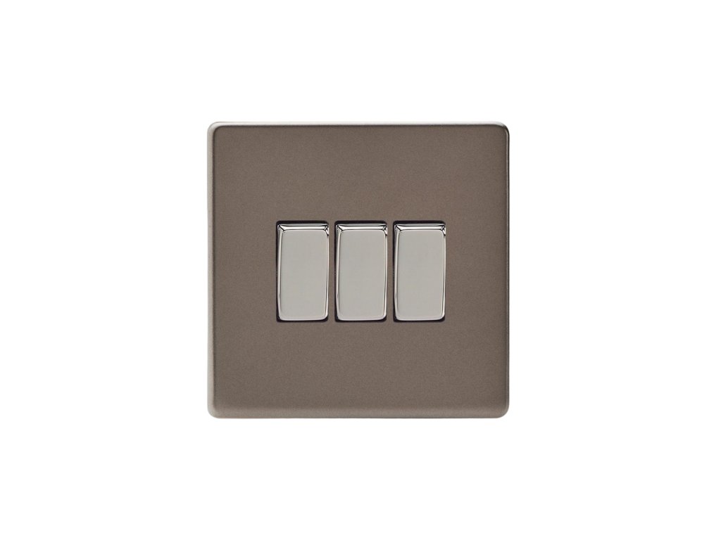 Kolébkový vypínaè ROCKER - 3-modulový schodiový (è.6); jednosmìrný (è.1) 10A 1-pólový BEZROUBKOVÉ - cínová / chromové kolébky