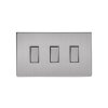 Kolébkový vypínaè ROCKER - 3-modulový schodiový (è.6); jednosmìrný (è.1) 10A 1-pólový BEZROUBKOVÉ - kartáèovaná ocel / ocelové kolébky