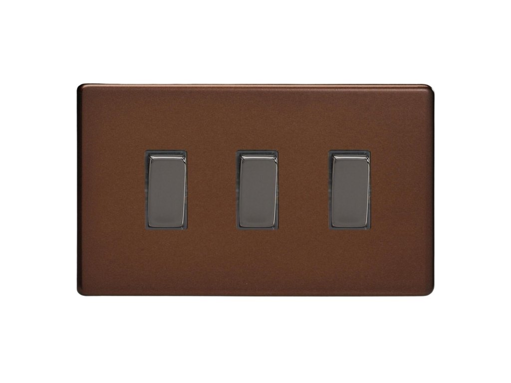 Kolébkový vypínaè ROCKER - 3-modulový schodiový (è.6); jednosmìrný (è.1) 10A 1-pólový BEZROUBKOVÉ - moka / èerné (lesklé) iridium