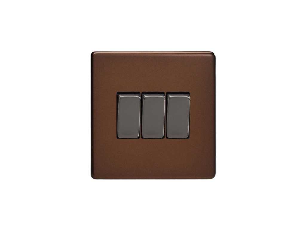 Kolébkový vypínač ROCKER - 3-modulový schodišťový (č.6); jednosměrný (č.1) 10A 1-pólový BEZŠROUBKOVÉ - moka / černé (lesklé) iridium