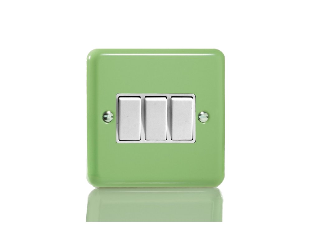 Kolébkový vypínaè ROCKER - 3-modulový schodiový (è.6); jednosmìrný (è.1) 10A 1-pólový KLASICKÉ - berylovì zelená / bílé kolébky