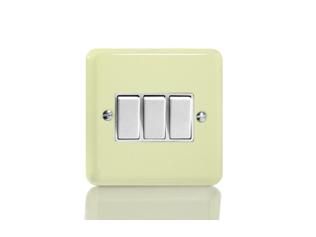Kolébkový vypínaè ROCKER - 3-modulový schodiový (è.6); jednosmìrný (è.1) 10A 1-pólový KLASICKÉ - bílá èokoláda / bílé kolébky