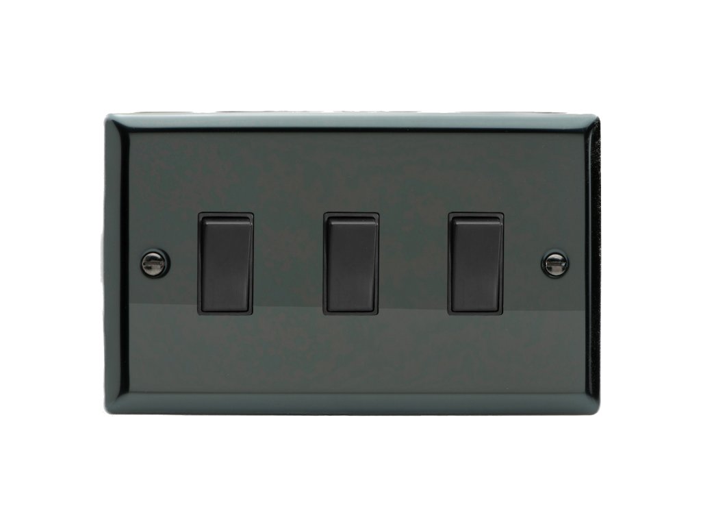 Kolébkový vypínaè ROCKER - 3-modulový schodiový (è.6); jednosmìrný (è.1) 10A 1-pólový KLASICKÉ - èerné (lesklé) iridium / èerné kolébky
