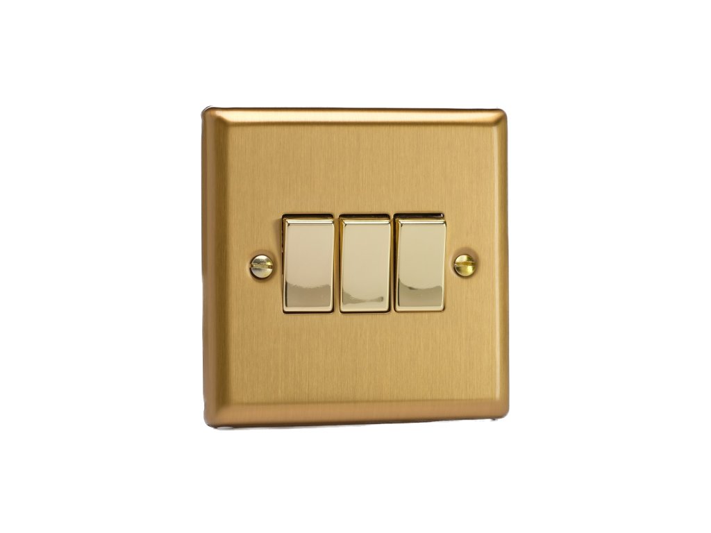Kolébkový vypínaè ROCKER - 3-modulový schodiový (è.6); jednosmìrný (è.1) 10A 1-pólový KLASICKÉ - kartáèovaná mosaz / mosazné kolébky