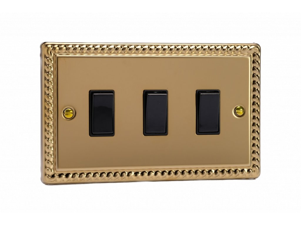 Kolébkový vypínaè ROCKER - 3-modulový schodiový (è.6); jednosmìrný (è.1) 10A 1-pólový KLASICKÉ - letìná mosaz / èerné kolébky