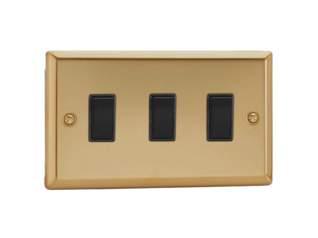 Kolébkový vypínaè ROCKER - 3-modulový schodiový (è.6); jednosmìrný (è.1) 10A 1-pólový KLASICKÉ - letìná mosaz / èerné kolébky