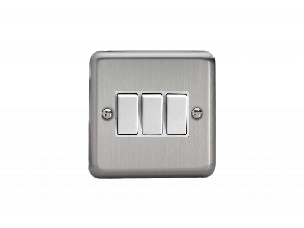 Kolébkový vypínaè ROCKER - 3-modulový schodiový (è.6); jednosmìrný (è.1) 10A 1-pólový KLASICKÉ - matnì chromová / bílé kolébky
