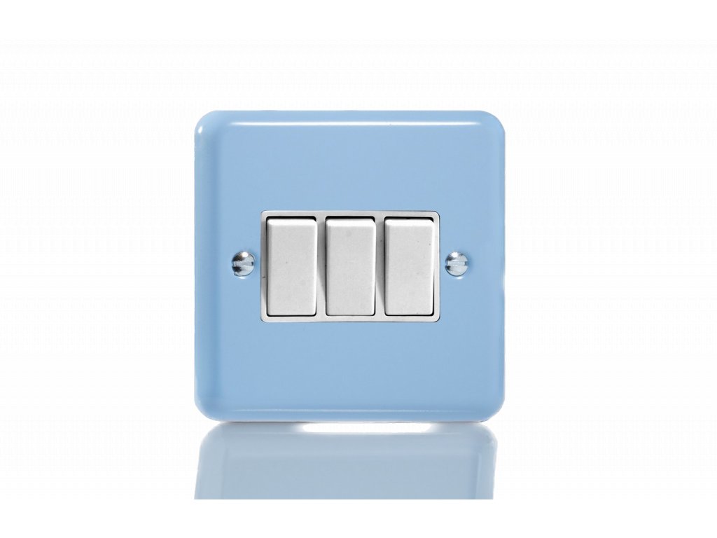 Kolébkový vypínač ROCKER - 3-modulový schodišťový (č.6); jednosměrný (č.1) 10A 1-pólový KLASICKÉ - skořápkově modrá / bílé kolébky