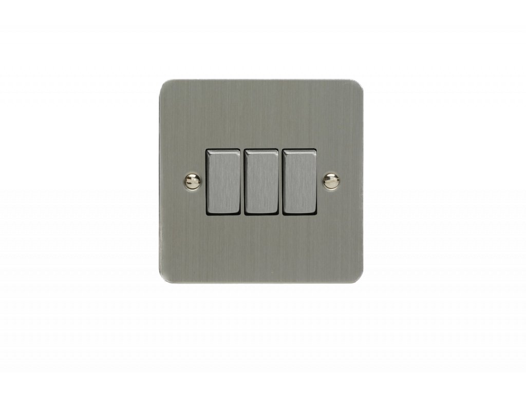 Kolébkový vypínaè ROCKER - 3-modulový schodiový (è.6); jednosmìrný (è.1) 10A 1-pólový ULTRAPLOCHÉ - kartáèovaná ocel / ocelové kolébky