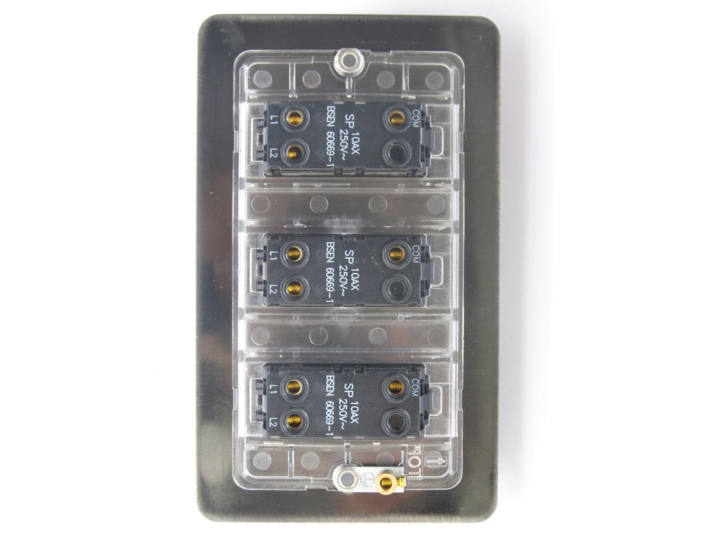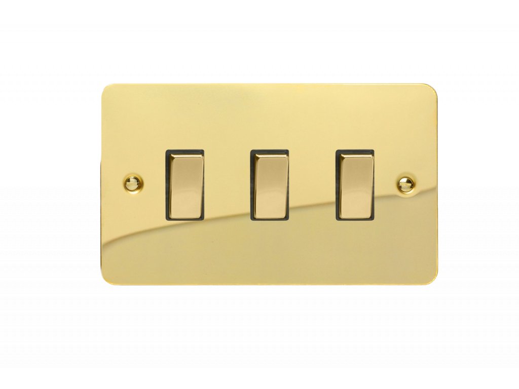 Kolébkový vypínaè ROCKER - 3-modulový schodiový (è.6); jednosmìrný (è.1) 10A 1-pólový ULTRAPLOCHÉ - letìná mosaz / mosazné kolébky