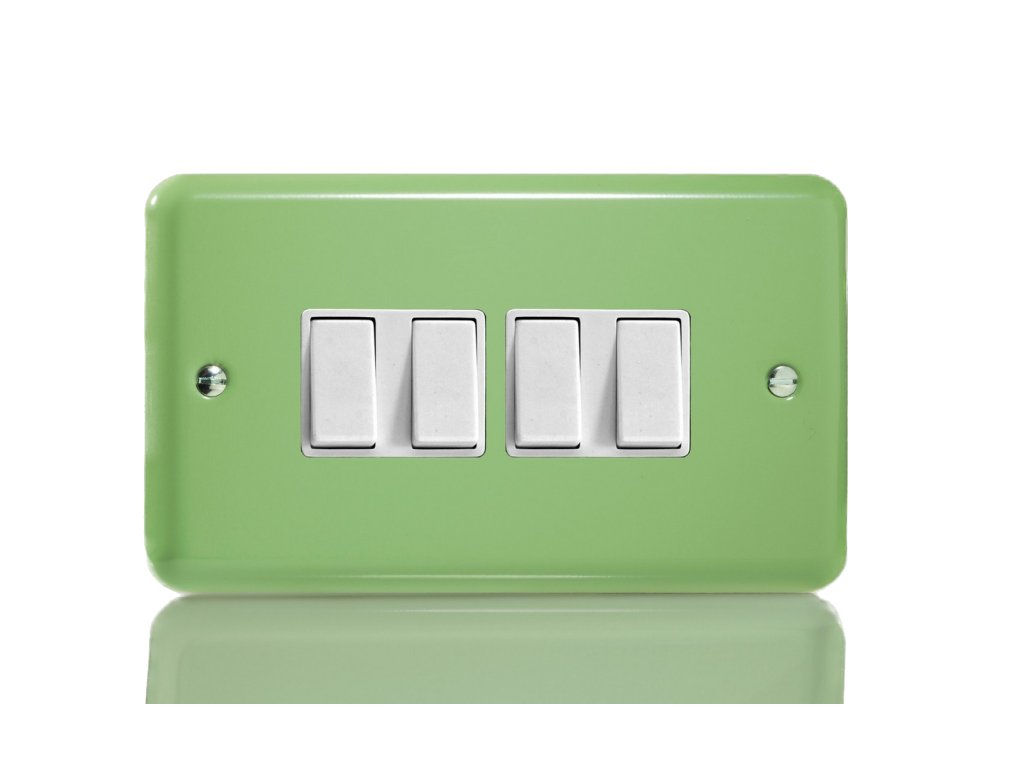 Kolébkový vypínaè ROCKER - 4-modulový schodiový (è.6); jednosmìrný (è.1) 10A 1-pólový KLASICKÉ - berylovì zelená / bílé kolébky