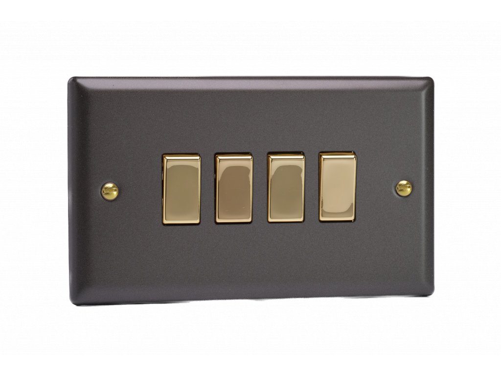 Kolébkový vypínaè ROCKER - 4-modulový schodiový (è.6); jednosmìrný (è.1) 10A 1-pólový KLASICKÉ - bøidlice / mosaz