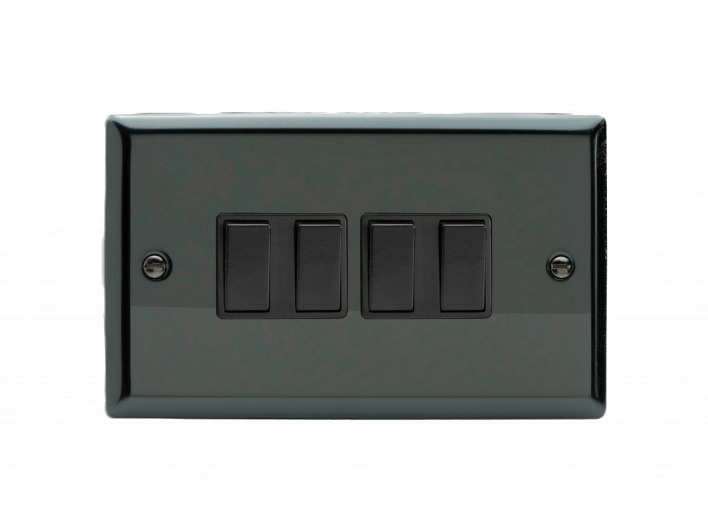Kolébkový vypínaè ROCKER - 4-modulový schodiový (è.6); jednosmìrný (è.1) 10A 1-pólový KLASICKÉ - èerné (lesklé) iridium / èerné kolébky