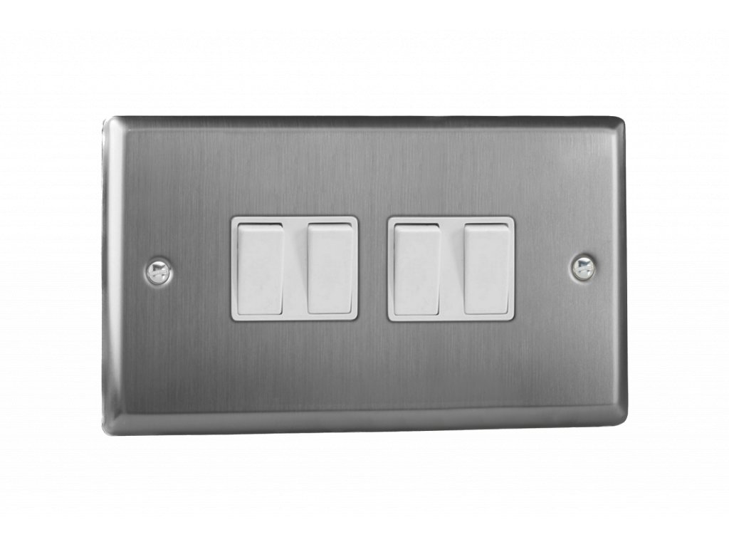 Kolébkový vypínaè ROCKER - 4-modulový schodiový (è.6); jednosmìrný (è.1) 10A 1-pólový KLASICKÉ - kartáèovaná ocel / bílé kolébky