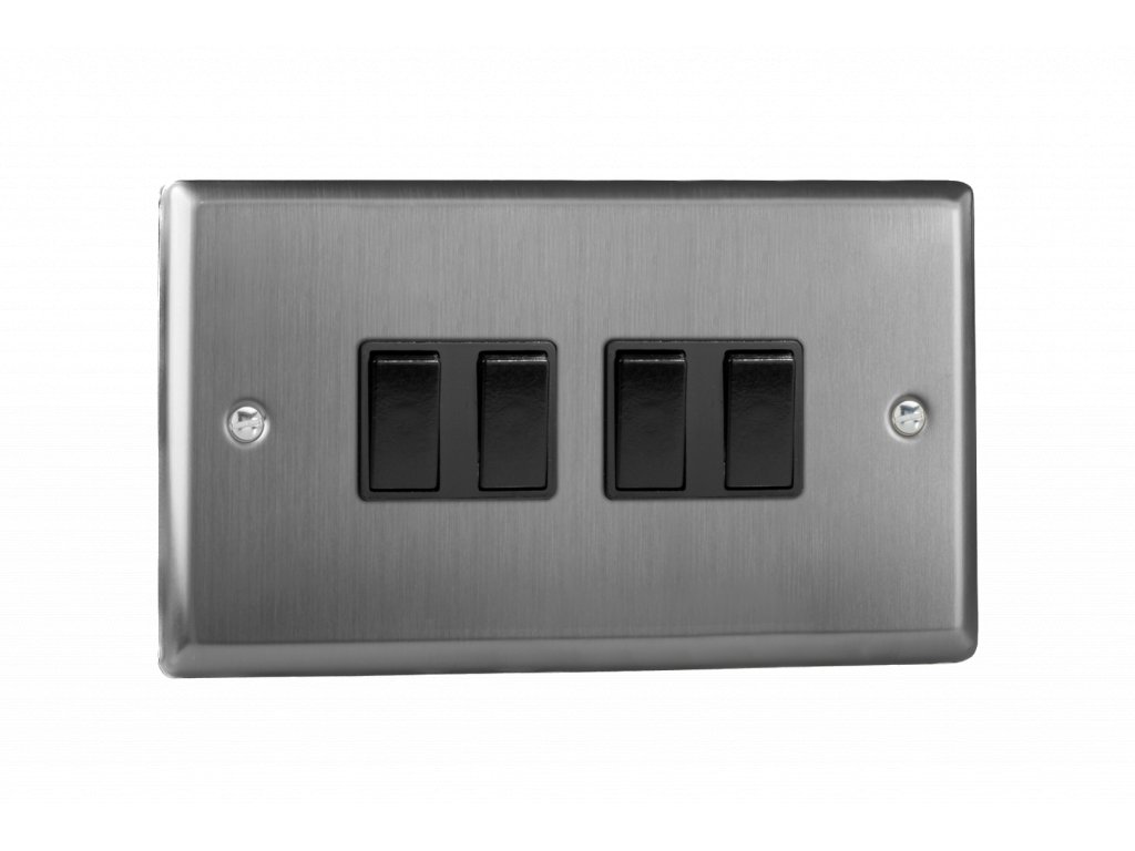 Kolébkový vypínaè ROCKER - 4-modulový schodiový (è.6); jednosmìrný (è.1) 10A 1-pólový KLASICKÉ - kartáèovaná ocel / èerné kolébky