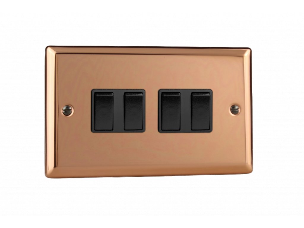 Kolébkový vypínaè ROCKER - 4-modulový schodiový (è.6); jednosmìrný (è.1) 10A 1-pólový KLASICKÉ - letìná mìï / èerné kolébky