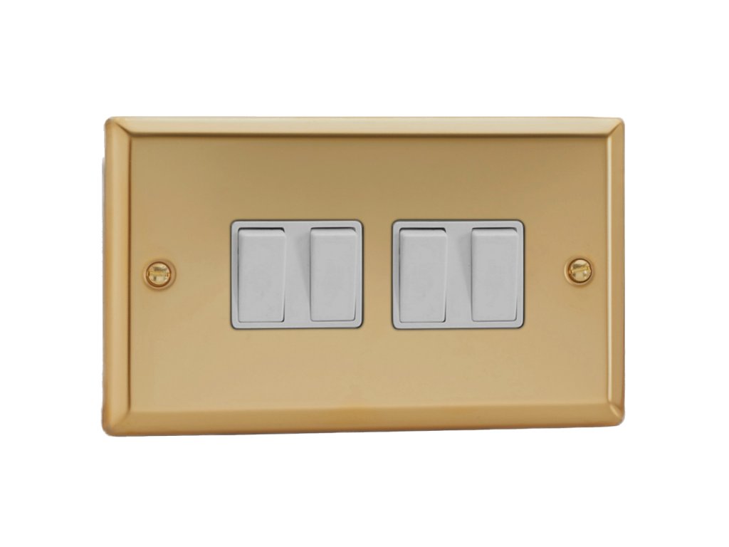 Kolébkový vypínaè ROCKER - 4-modulový schodiový (è.6); jednosmìrný (è.1) 10A 1-pólový KLASICKÉ - letìná mosaz / bílé kolébky