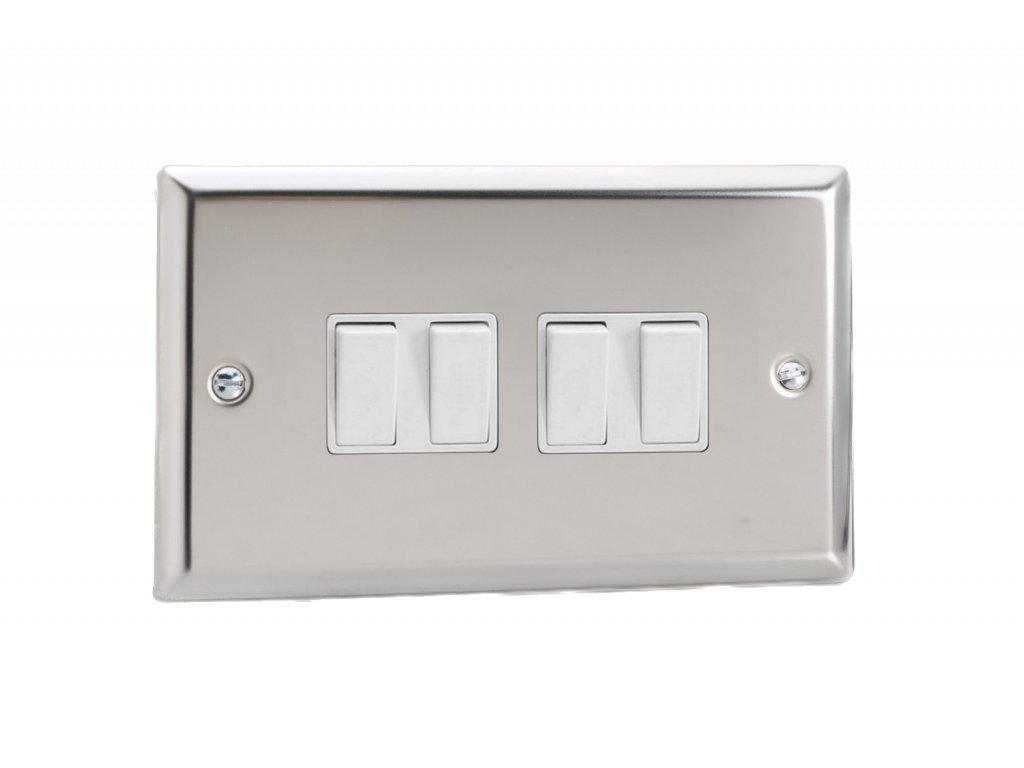 Kolébkový vypínaè ROCKER - 4-modulový schodiový (è.6); jednosmìrný (è.1) 10A 1-pólový KLASICKÉ - letìný chrom / bílé kolébky