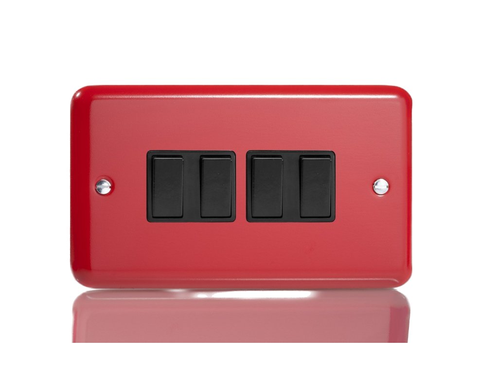 Kolébkový vypínač ROCKER - 4-modulový schodišťový (č.6); jednosměrný (č.1) 10A 1-pólový KLASICKÉ - poštovní červená / černé kolébky