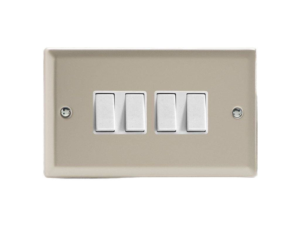 Kolébkový vypínač ROCKER - 4-modulový schodišťový (č.6); jednosměrný (č.1) 10A 1-pólový KLASICKÉ - satén / bílé kolébky
