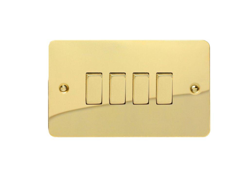 Kolébkový vypínaè ROCKER - 4-modulový schodiový (è.6); jednosmìrný (è.1) 10A 1-pólový ULTRAPLOCHÉ - letìná mosaz / mosazné kolébky