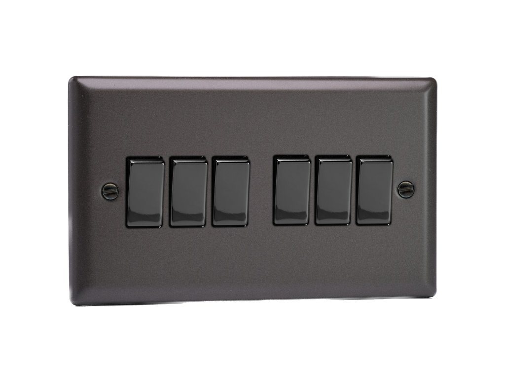 Kolébkový vypínaè ROCKER - 6-modulový schodiový (è.6); jednosmìrný (è.1) 10A 1-pólový KLASICKÉ - grafit 21 / èerné (lesklé) iridium