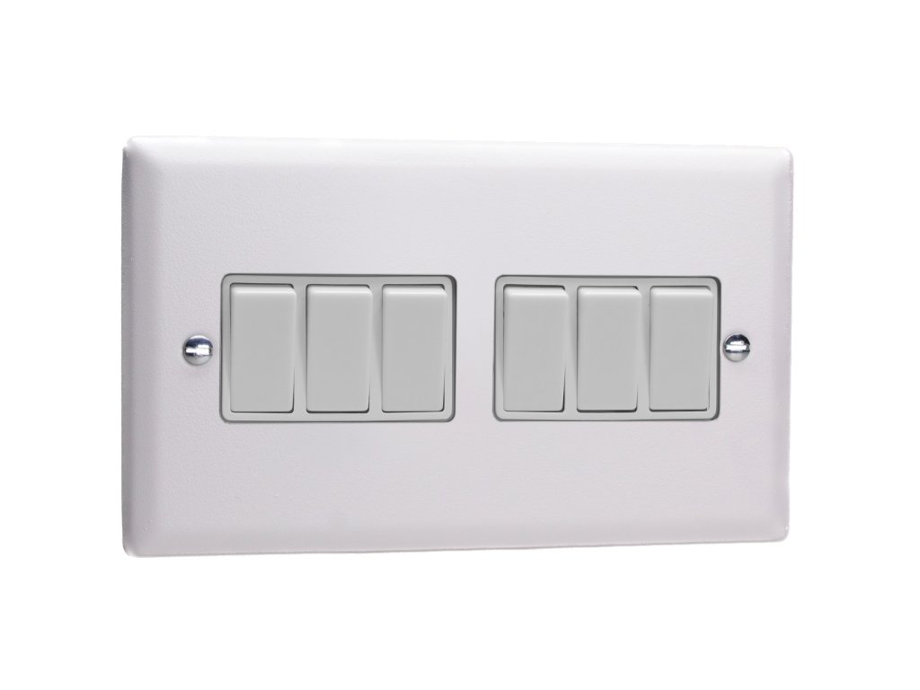 Kolébkový vypínaè ROCKER - 6-modulový schodiový (è.6); jednosmìrný (è.1) 10A 1-pólový KLASICKÉ - køída bílá / bílá