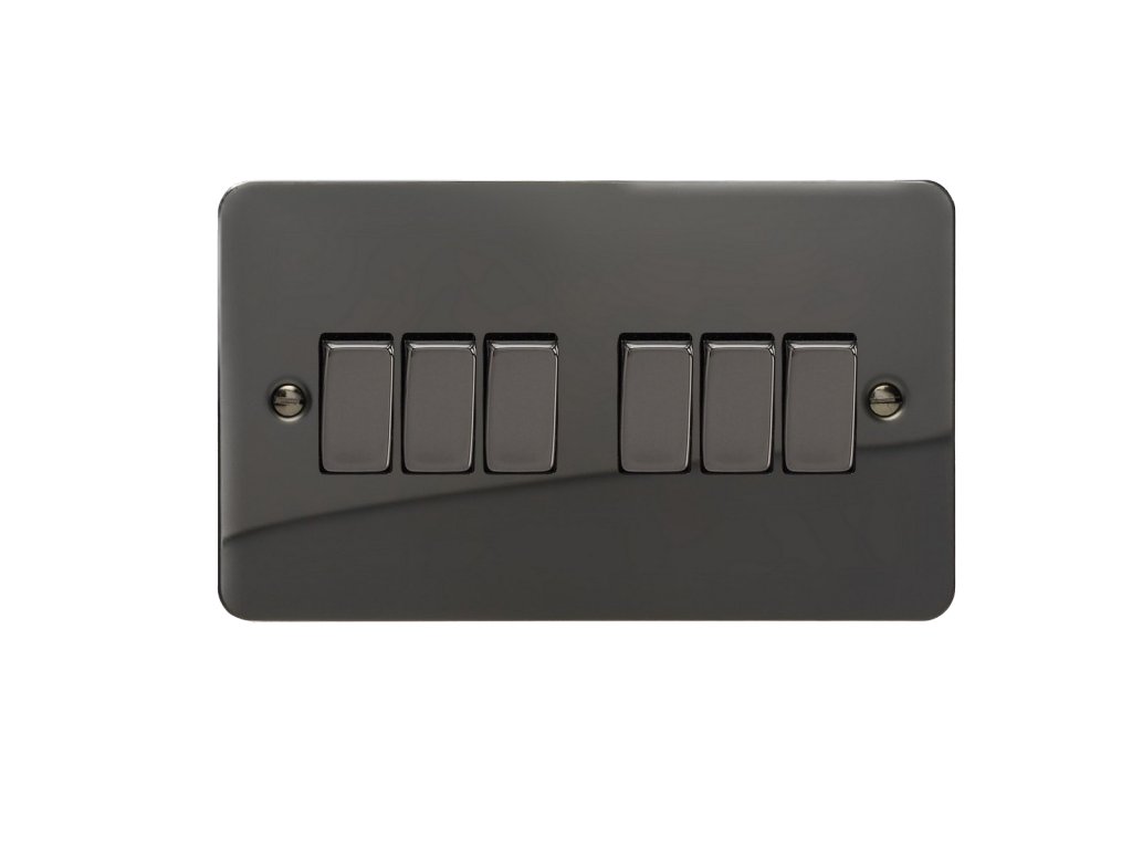 Kolébkový vypínaè ROCKER - 6-modulový schodiový (è.6); jednosmìrný (è.1) 10A 1-pólový ULTRAPLOCHÉ - èerné (lesklé) iridium / èerné (lesklé) iridium