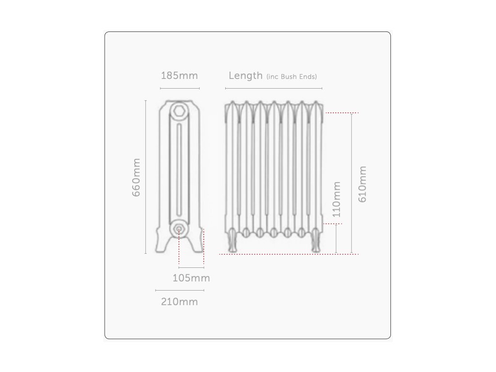 Litinový radiátor Piccadilly 660 mm v barvě Paladin